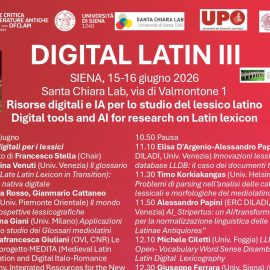 The third edition of the workshop Digital Latin, dedicated to the use of digital and AI in research on Latin lexicon, will be held in Siena on 2026, June 15th and 16th, according... LEGGI TUTTO